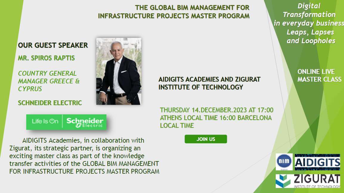 AIDIGITS ACADEMIES and ZIGURAT cordially invite you to an insightful Master Class. This event is a part of our ongoing academic and knowledge-sharing activities for the Global BIM Management for Infrastructure Projects Master Program.