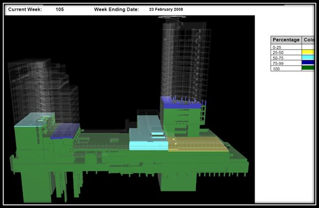 Using BIM and the 3D visualization technology will enable the project team to update the progress on the 3D model, view and monitor the project progress against the plan and then report partially and/or fully the progress of the project construction activities. Such reporting supported by comparisons and analysis enables the decision makers to view abnormalities or potential delays early enough to take the corrective measures that reduces the impact of the delay and puts the project back on track. Construction stakeholders share the similar pain of cost of runs and time delays. The proper implementation of such technology will reduce if not reverse this condition which is dominant in most of the construction sites.